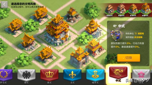 最后,提供一個新手優(yōu)先選擇的文明:中式文明!5%的建筑加速,對于前期發(fā)育能節(jié)省一定的加速。