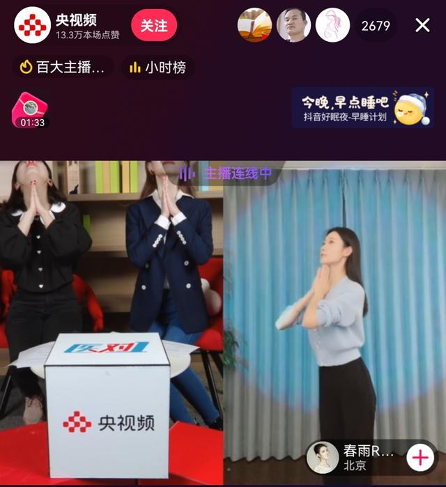 此后,央視頻與舞蹈主播@春雨Rain_ 連線。在《雪落下的聲音》優(yōu)美的歌曲和舞蹈展示后,春雨現(xiàn)場(chǎng)教網(wǎng)友三個(gè)簡(jiǎn)單而輕體量的拉伸動(dòng)作。她還分享了自己使用助眠抱枕、睡前喝愛(ài)心小米湯等好的睡眠習(xí)慣,告訴大家睡眠有利于保養(yǎng)皮膚、減肥等,倡導(dǎo)大家早睡。