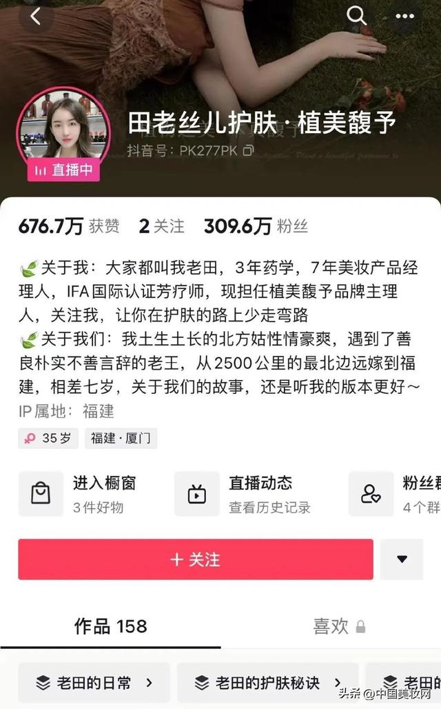 “防曬霜要不要天天涂?”、“不洗臉可以讓皮膚變好?”、“成本三塊錢去除閉口粉刺。”……這些護(hù)膚硬干貨,都在@田老絲兒護(hù)膚·植美馥予(以下簡稱“田老絲兒”)的主頁出現(xiàn)。