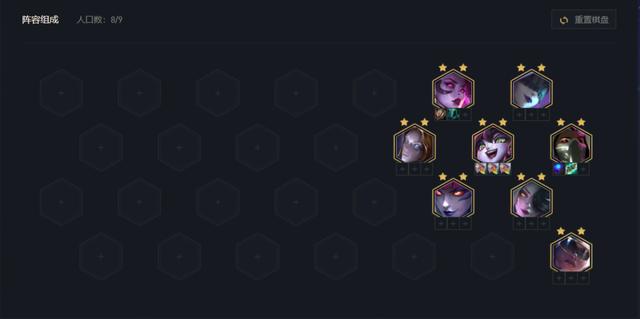 4-1/4-2升7人口,7人口大搜一波直至陣容成型,成型就可以鎖血存錢直沖8人口,如果沒有學(xué)者轉(zhuǎn)職就優(yōu)先4學(xué)者3白魔,8人口補(bǔ)上4白魔,不扎堆站位就是莫甘娜單頂前排,其他最后一排,烈娜塔可以第三排。