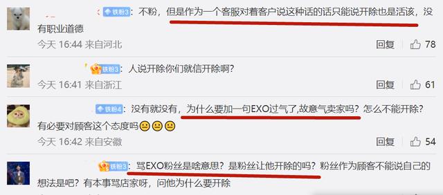 理由是客服就應該當顧客是上帝,既然對方特地來問EXO模板,心里就該知道對方是EXO粉絲,在粉絲面前說愛豆過氣了,這換誰聽了也不舒服。