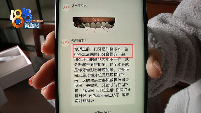 柴女士給記者看了調(diào)整牙齒前的照片,說原先門牙旁邊這顆側(cè)切牙有點向外凸,出于美觀考慮,想調(diào)得整齊些,她就在網(wǎng)店做了牙套。