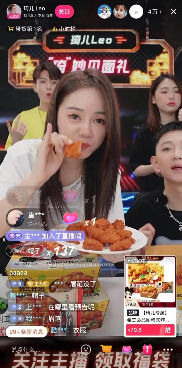 琦兒在直播中推薦一款炸雞來源 / 抖音直播截圖