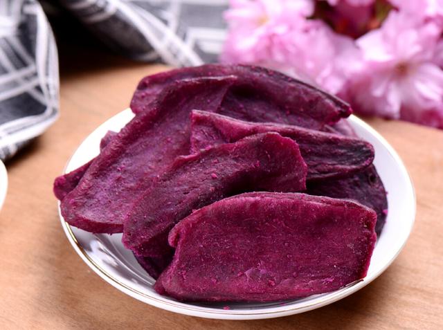 紫薯比普通的紅薯含糖量更少,吃起來沒有那么甜,也不用擔(dān)心攝入體內(nèi)過多糖分??诟熊浥次⑻穑粫l(fā)硬,同時又很有嚼勁,玲玲最喜歡在閑來無事追劇看電影的時候吃。