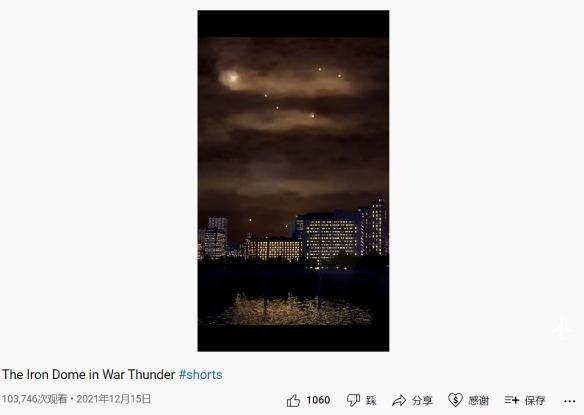 然而這一視頻實為一款名為《戰(zhàn)爭雷霆》游戲畫面。YouTube上的用戶Pandramodo曾上傳多個游戲視頻,并將這種虛擬導彈攔截系統(tǒng)戲稱為“鐵穹”。