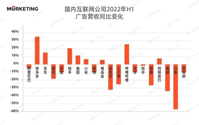2022上半年可以說是對(duì)每個(gè)互聯(lián)網(wǎng)公司的考驗(yàn),在Morketing統(tǒng)計(jì)的20家互聯(lián)網(wǎng)上市公司中,只有8家公司的廣告營收實(shí)現(xiàn)同比增長,其余12家均出現(xiàn)負(fù)增長情況
