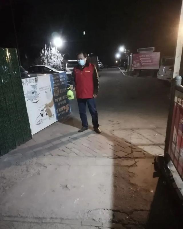 53歲的牟長青法官每天晚上11點到早晨7點在林西街道龍江瑞景小區(qū)大門卡點值守,負(fù)責(zé)進(jìn)出檢查、登記。有人進(jìn)出時他嚴(yán)格地掃碼、測溫、檢查,無人時便拎著裝有消毒水的噴壺認(rèn)真地對值班室四周進(jìn)行消毒。