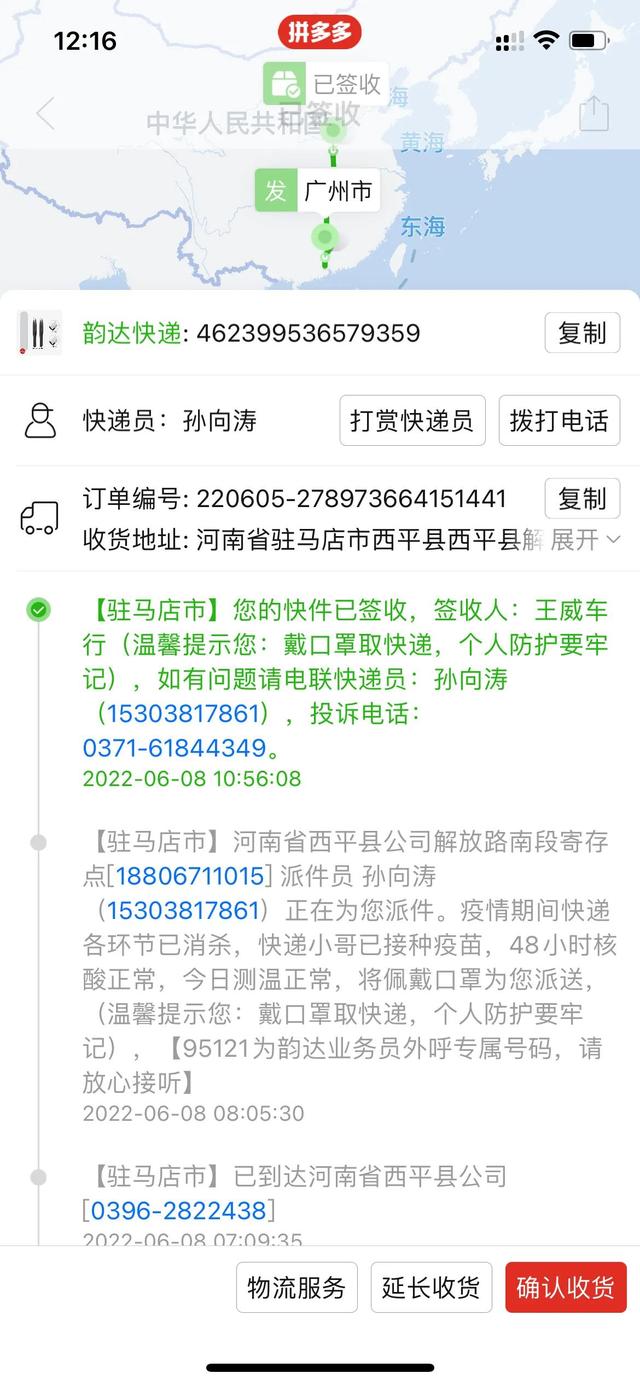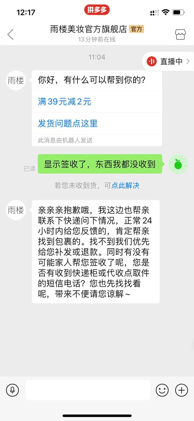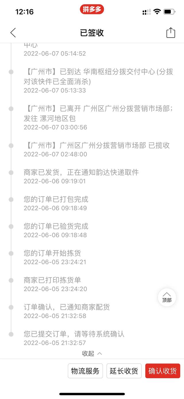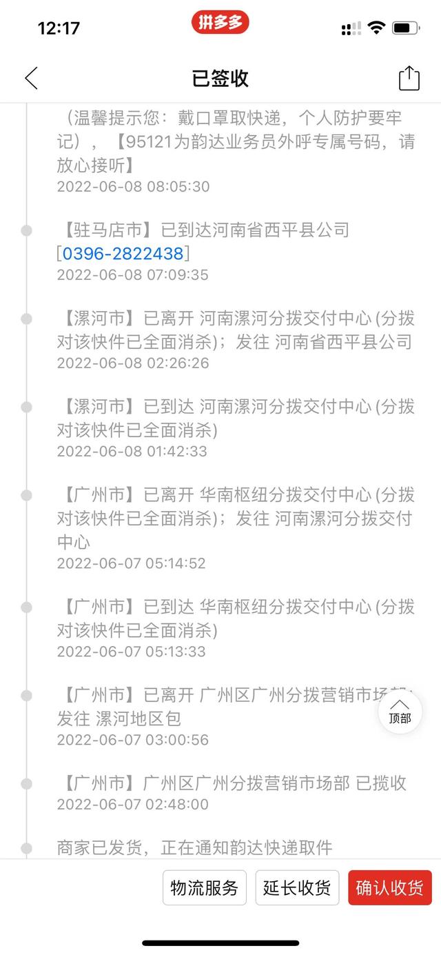 幾天前買了一個(gè)小東西,物流通知6月8號(hào)十點(diǎn)到的,而且簽收了。本人根本就沒(méi)有見(jiàn)過(guò)自己買的東西,就這么被簽收的,而且東西是在本人店內(nèi)簽收的!本人沒(méi)有見(jiàn)到實(shí)物就可以簽收,物流公司真的可以了。