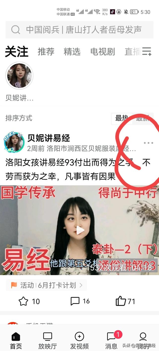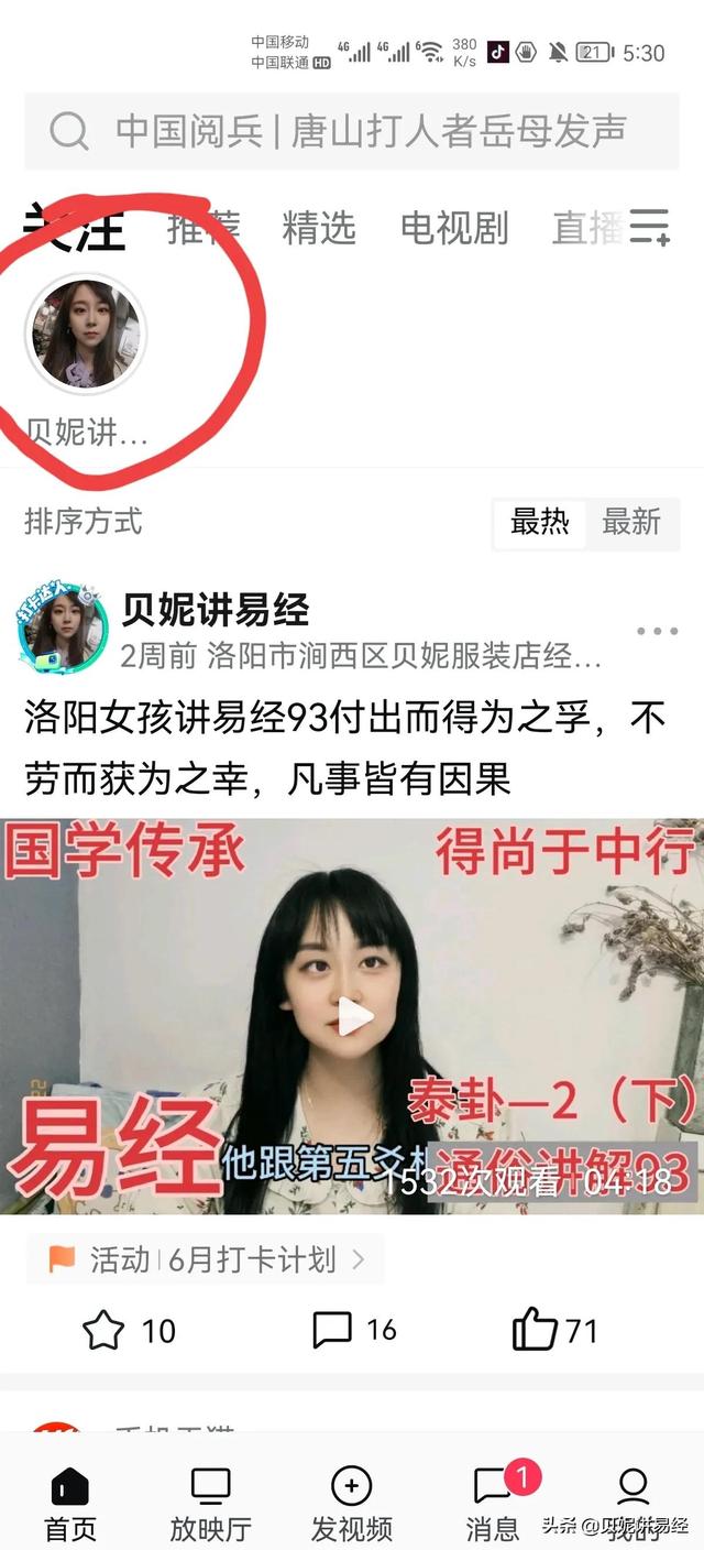 然后點(diǎn)左上角關(guān)注,點(diǎn)貝妮講易經(jīng)。