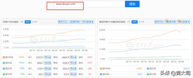 通過查詢發(fā)現(xiàn),截止2022年3月06日,百度已經(jīng)收錄5億7642萬條抖音鏈接。多了搜索引擎的流量入口,這對于運(yùn)營抖音短視頻的朋友來說,無疑是一個重磅利好!同樣,通過5118站長工具查看“抖音網(wǎng)頁版”百度PC和移動的排名趨勢,可以發(fā)現(xiàn),不管是PC端還是移動端,均從9月中旬開始大幅上漲。下圖所示為近30天的趨勢
