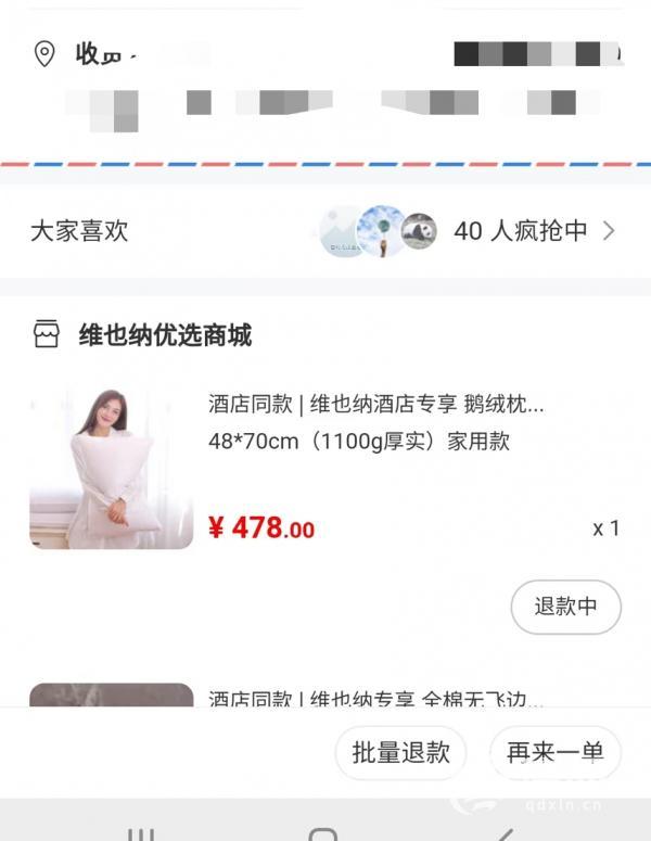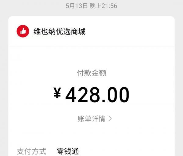 張先生稱,因經(jīng)常出差住酒店的緣故,他對維也納酒店的枕頭一直“情有獨鐘”。作為維也納酒店的老顧客,5月13日當他看到“維也納優(yōu)選商城”推出了酒店同款的鵝絨枕,他立即就下單了48*70cm尺寸、1100g厚實家用款的鵝絨枕?!皟?yōu)惠后,我微信總共支付了428元?!?/p>
