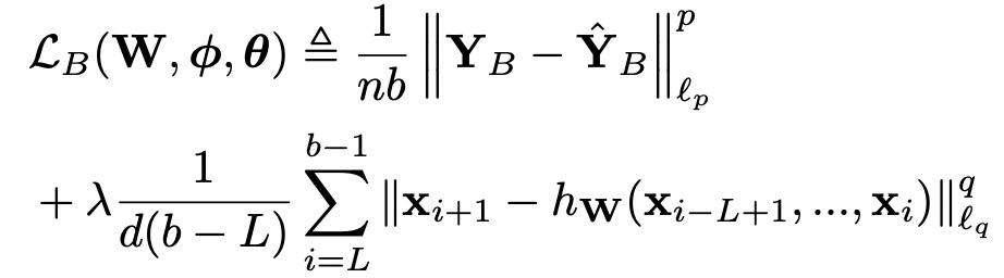 在此基礎上,Think Globally, Act Locally: A Deep Neural Network Approach to High-Dimensional Time Series Forecasting(NIPS 2019,DeepGLO)提出了使用深度學習模型對base序列正則化。模型的損失函數(shù)由兩個部分組成,公式可以表示為: