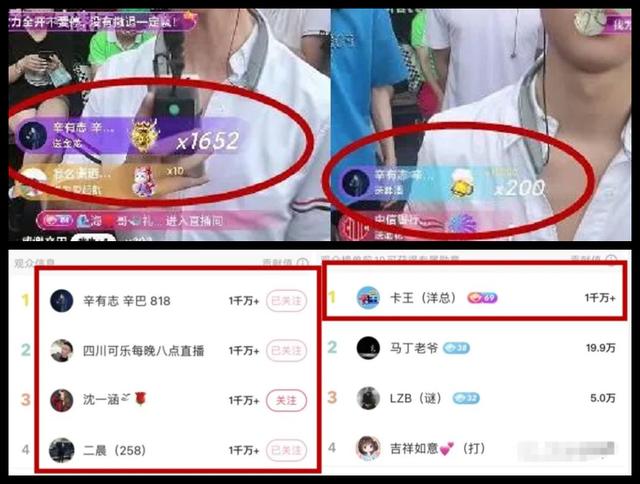 值得一提的是!在進(jìn)入“天道”直播間的眾網(wǎng)紅之中,也出現(xiàn)了現(xiàn)如今號稱“帶貨一哥”的辛巴(9000多萬粉絲)的身影。辛巴在進(jìn)入直播間后,二話不說便開始豪刷禮物。一組價值200萬的“金龍”,外加一組價值200萬的“啤酒”,直接強勢碾壓各大“刷客”,登上了榜一的位置。
