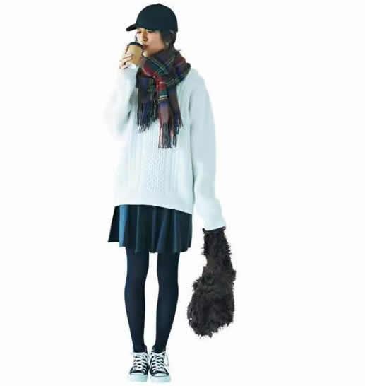 大毛衣配膝上短靴,正演變?yōu)榭蓯凵倥L的經(jīng)典穿搭。青春肆虐下,來一雙可通殺的黑白配帆布鞋點綴,算是對成熟的一點彌補。