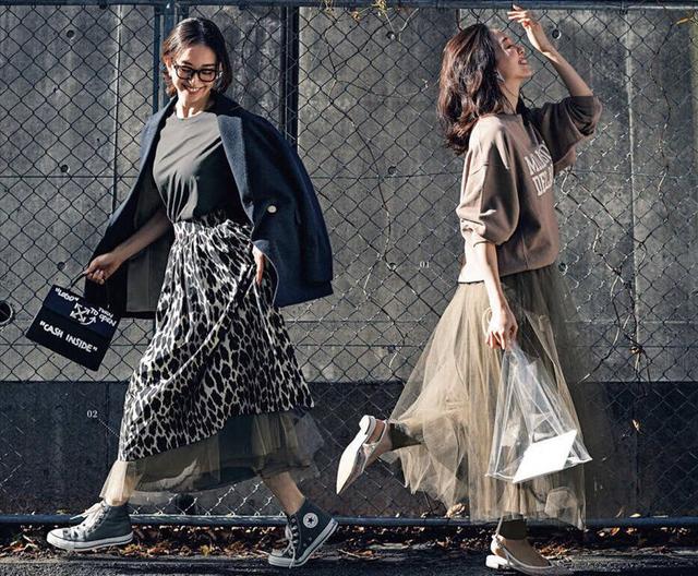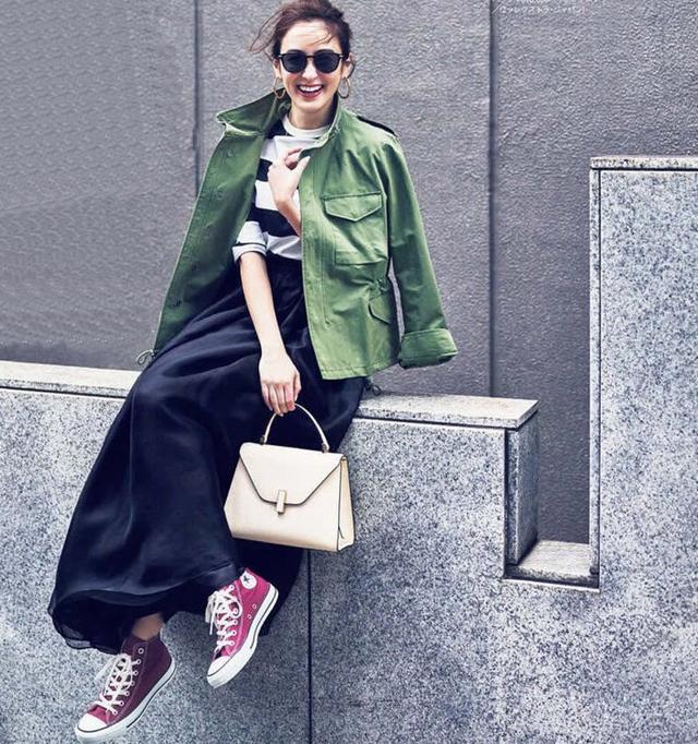 甜酷混搭,不知讓多少溫柔女子為之傾倒。最常出現(xiàn)的搭配形式,半身裙與帆布鞋算是穩(wěn)居前列。裙子越甜美飄逸,帆布鞋的調(diào)和就越得意。