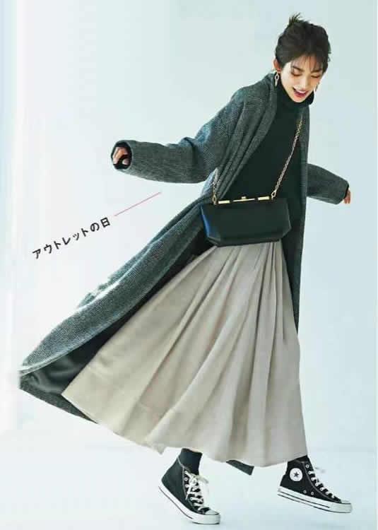 長度越長,越考驗對腳下的輕盈收尾。正好,秀氣的帆布鞋擔著調(diào)和大任。怕天氣冷?外面還有大衣或羽絨服啊。