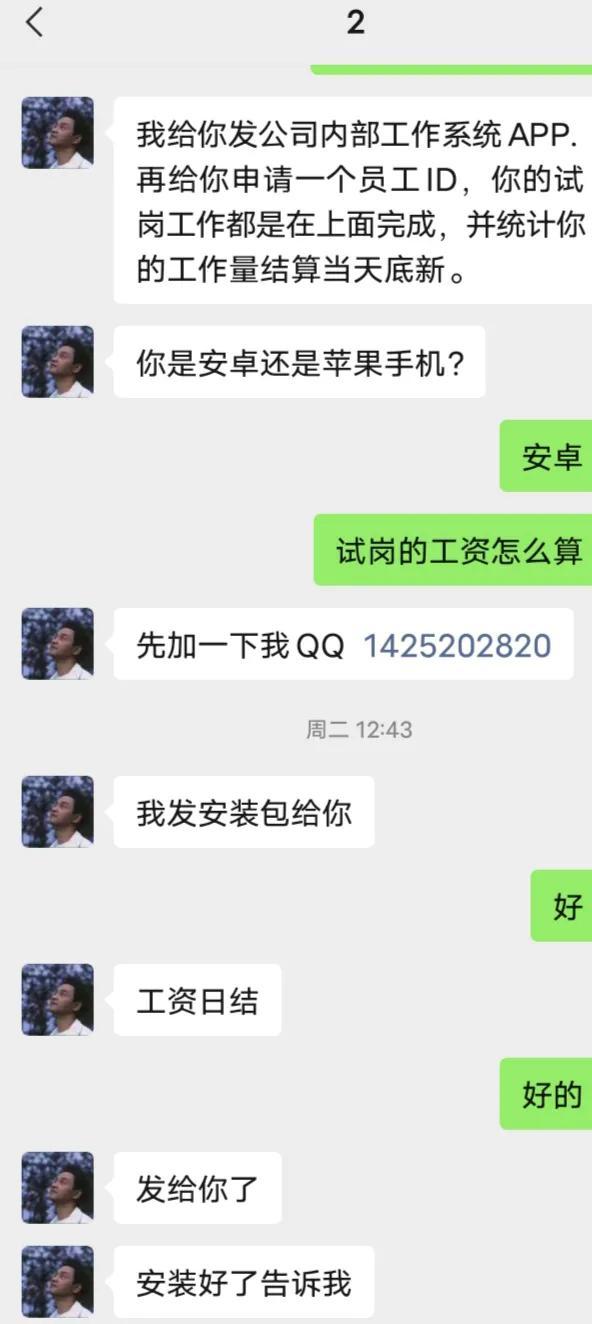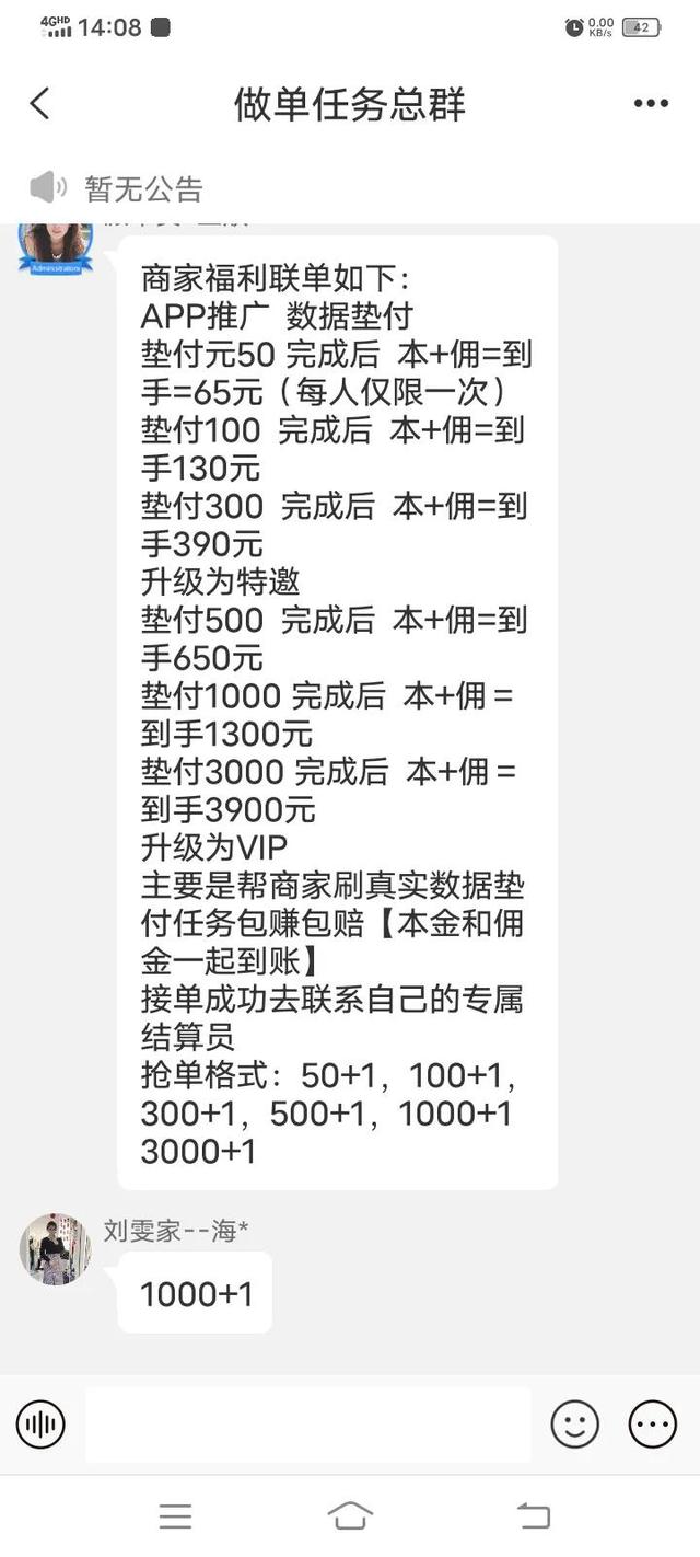 那時(shí)我做滿了普通30單,然后派單員讓我做商家聯(lián)單墊付返利的那種,我知道這種是放長(zhǎng)線釣大魚的,我就沒有去做。我跟她說我非常缺錢,錢不夠 。她說不可以長(zhǎng)期不做商家聯(lián)單,你還在考核期。我委婉的說:"好的,我后面會(huì)做的″ 。后面到了晚上十點(diǎn),他們要下班了。然后就安排了第二天早上10點(diǎn)要我去打卡簽到。然后就給我發(fā)支付寶紅包口令紅包 。