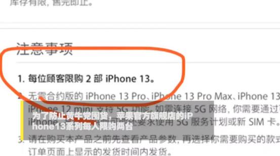 你有張良計,我有過墻梯。為了防止黃牛肆意囤貨,蘋果官方旗艦店表示,iPhone 13系列每人限購兩臺。
