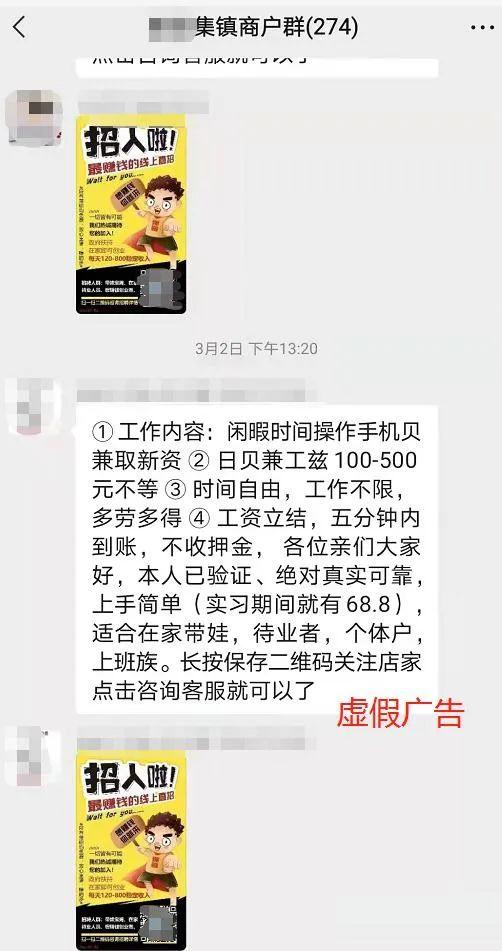 在群眾的微信群內(nèi)轉(zhuǎn)發(fā)虛假招工廣告