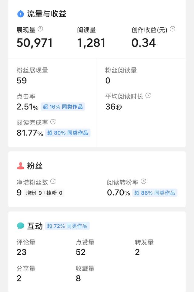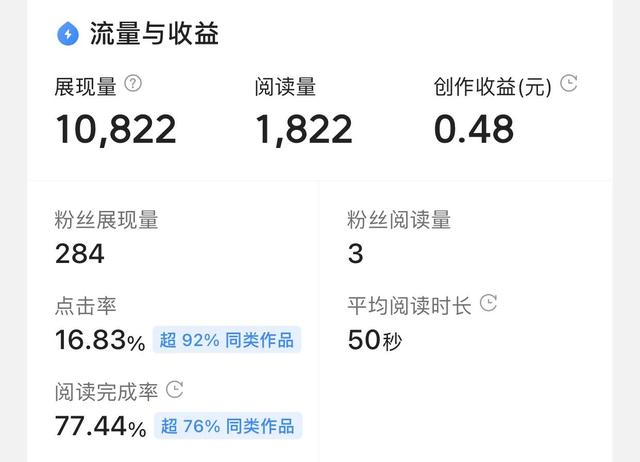 一年前,做時(shí)尚類視頻。每一個(gè)視頻播放量都是幾千,單價(jià)都在1-2元內(nèi)。堅(jiān)持了很久,后來(lái)做自媒體的人越來(lái)越多,自己換領(lǐng)域?qū)懳恼滤阒匦麻_(kāi)始,視頻播放量特別低。