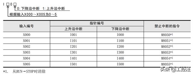 FX3U中輸入中斷對應(yīng)的指針編號: