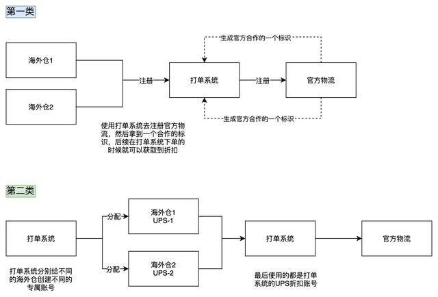 第二類可以理解為一個物流賬號的分銷系統(tǒng),打單系統(tǒng)的后臺將一個很有優(yōu)勢的官方賬號,裂變成多個打單系統(tǒng)的子賬號,然后子賬號分別提供給不同的海外倉使用,最后所有的預報信息和賬單等都會匯總到打單系統(tǒng)的后臺中,本質(zhì)上是對一個賬號的使用劃分了不同的渠道而已。