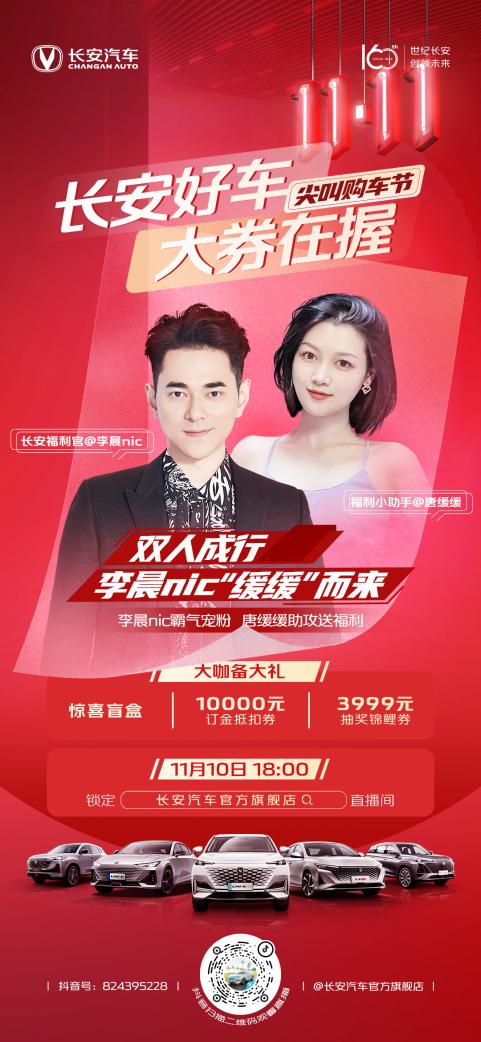 流量時(shí)代,怎么少得了明星大咖。在雙十一即將來(lái)臨的前夜,長(zhǎng)安汽車(chē)“雙十一尖叫購(gòu)車(chē)節(jié)”迎來(lái)最高潮的“Big Day”主題直播活動(dòng),直接將本次活動(dòng)的熱情燃至高點(diǎn)。