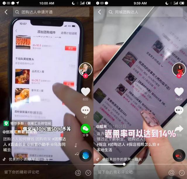 隨后,去年11月,抖音推出了“餐飲扶持計(jì)劃”,正式切入了支付體系。一方面,免費(fèi)邀請(qǐng)商戶入駐,入駐后可以發(fā)布代金券或者套餐;另一方面,探店達(dá)人可以在視頻中掛上商家的代金券或套餐鏈接,從而獲取商家給予的10%傭金。