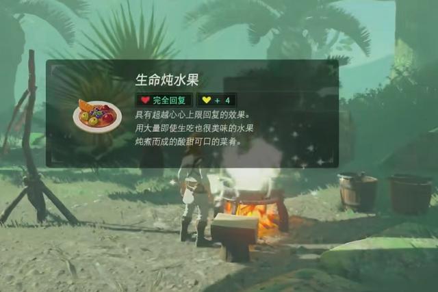 在塞爾達中,血量分為紅心和黃心,上限是30。剛出生的時候只有三個紅心,每當我們開啟了四個神廟后,就可以拿到徽章然后去女神像前獲得耐力或者生命的上限。而黃心作為超過的上限生命條,能大大的提高我們在前期的容錯率。所以能烹飪出有黃心的這種料理是我們居家旅行必備良藥。