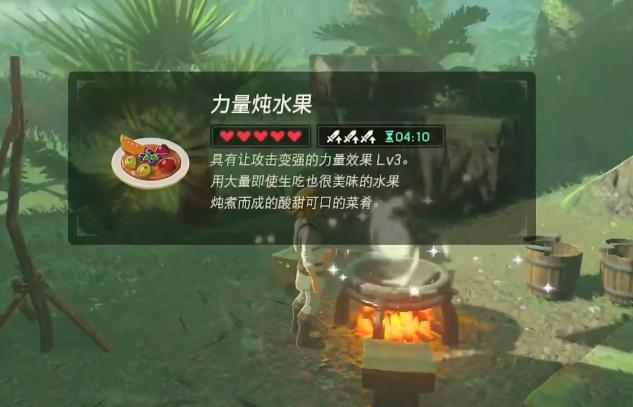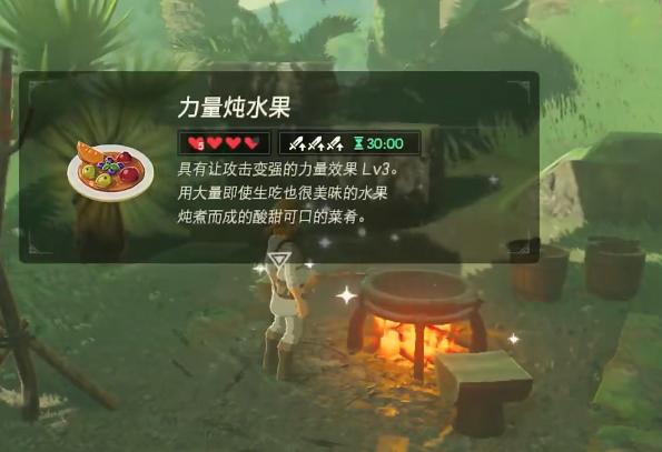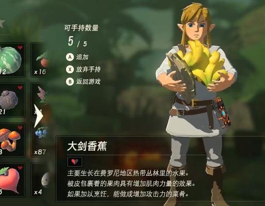 我們就可以獲得lv3的力量加成持續(xù)時間4分鐘。有人說四分鐘也太短了。所以這次我們的料理配方加入了珍貴的龍角材料。就是我們之前賺錢的時候打的龍角。(不知道如何打龍角的朋友可以移步我之前的文章塞爾達賺錢攻略中查看)四個大劍香蕉,加一個龍角之后我們可以獲得三十分鐘LV3的攻擊加成。非常的好用,在初期我們沒有那么有經驗打人馬,或者是劍之試煉中都非常好用!