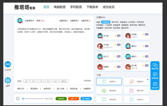 這是一款很實(shí)用的短視頻配音助手,可以在網(wǎng)頁,app,公眾號(hào)上都能使用,復(fù)制文案進(jìn)去,按一下生成就能合成語音,十分的簡單。然后這個(gè)軟件可以調(diào)節(jié)語速,語調(diào),停頓,背景音,等等。