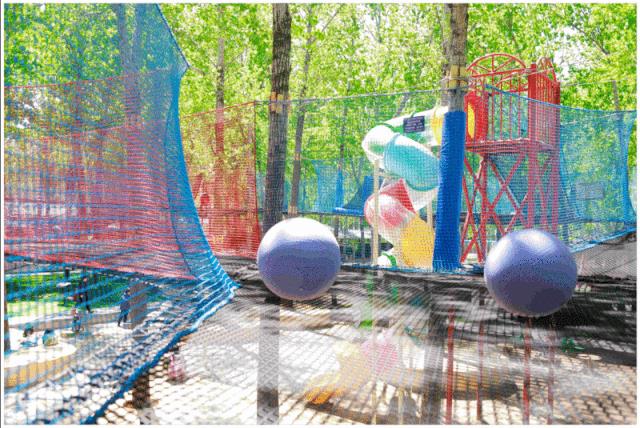 對(duì)于小朋友們而言,這是一個(gè)可以盡情奔跑撒歡兒的樂園。幾十種游樂設(shè)施,足足可以讓孩子們瘋玩一整天。比如樂園里有名的“長龍”攀爬網(wǎng)籠,超級(jí)鍛煉孩子們的體能和身體協(xié)調(diào)能力。