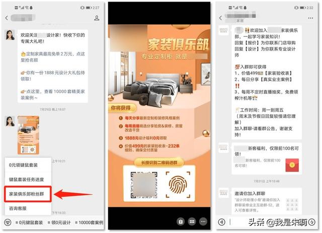 我們可以看到圖中案例,利用公眾號內(nèi)容輸出+社群引流+直播的營銷閉環(huán),來實(shí)現(xiàn)線下門店的經(jīng)營賦能,首先家裝行業(yè)的痛點(diǎn)在于線下推廣成本高,推廣渠道面窄,通過公眾號持續(xù)輸出家裝干貨吸引到目標(biāo)人群之后,再引流到社群,進(jìn)而再做直播間的推廣和預(yù)告,最終以直播間定金成交,線下升單,這樣就完成了一整套的私域直播營銷;