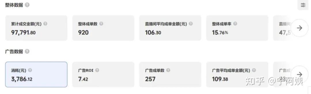 一般來說廣告的客單價是直播間客單價的80%-100%左右,多品直播間廣告成單只是直播間的部分訂單,看人群在直播間成交的客單價,廣告客單價越接近,直播間客單價人群越精準,投放能力越平穩(wěn)。