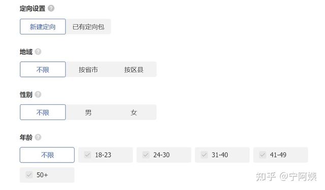 定向人群:地域、性別、年齡根據(jù)產(chǎn)品使用人群去選,也可以去看直播數(shù)據(jù)主屏左下角的人群設(shè)置,這里設(shè)置好以后不用再來變動,基礎(chǔ)定向選好可以一直用,測試精力不要放在這里。