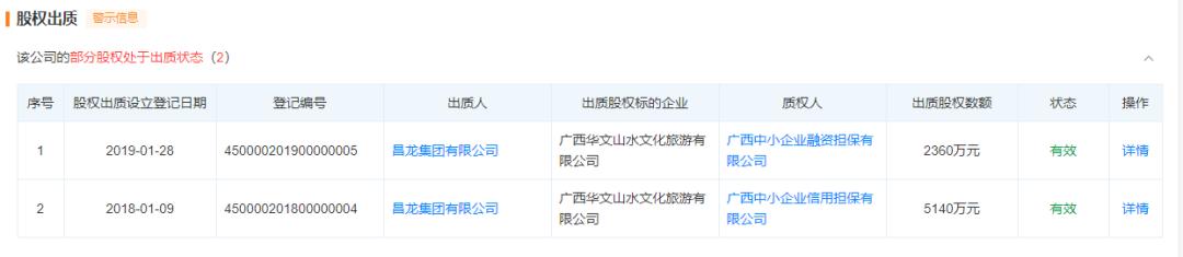圖 | 昌龍兩次出質(zhì)廣西華文山水股權(quán)