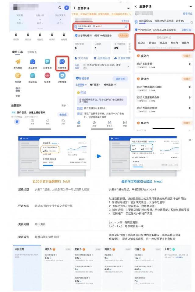 首先看出平臺(tái)更重視中小商家,通過層級(jí)診斷給中小商家更清晰地成長路徑,完成任務(wù)躍身層級(jí)。通過任務(wù)提升層級(jí)以后,可領(lǐng)取更多福利:比如更多生意參謀免費(fèi)工具網(wǎng)商銀行貸款福利等。