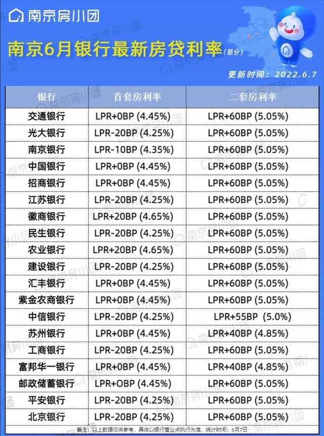 南京首套房房貸利率,最低4.25%,多數(shù)銀行普遍調(diào)整為4.25%-4.45%。