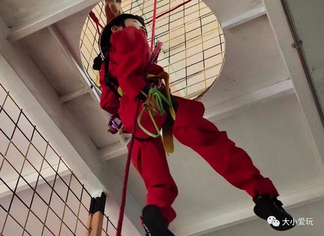 洞內(nèi)無光源,孩子們照舊需要佩戴安全帽、頭燈、護膝、手套等護具。最開始時,孩子們可以從4米的教學(xué)區(qū)入手,在這里可以練習(xí)垂直洞口的上升與下降,沿著陡峭的洞壁爬上二層,就算成功啦!接著就到了第三層了,這層的難度有所上升,洞內(nèi)的裂縫和障礙都模擬真實洞中的走向,特別刺激。等走到最高點時,就可以從洞中的懸空豎井下來啦。