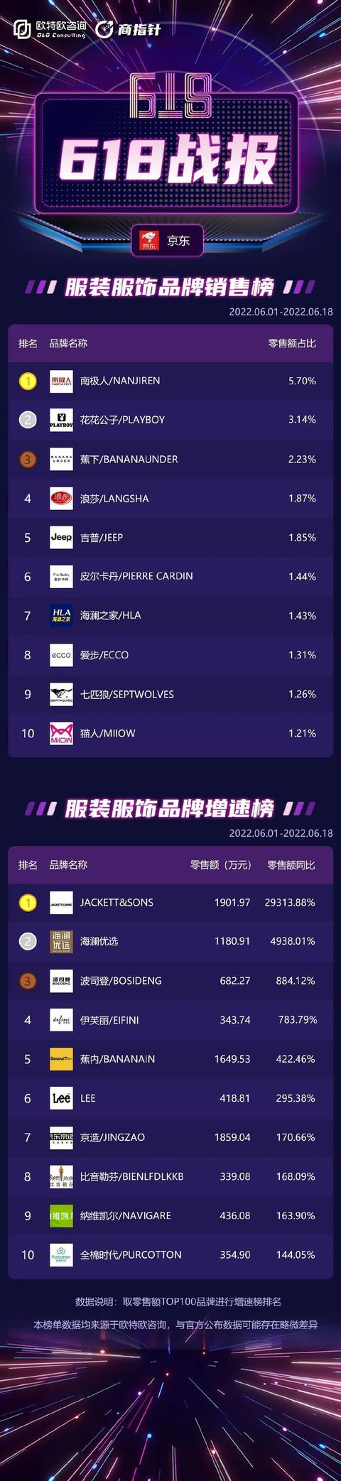 而在高增品牌榜單中,回歸京東的“波司登”、“海瀾優(yōu)選”榜上有名。而一些代表了實用主義、高品質、高效率的國產(chǎn)中產(chǎn)品牌“JACKETT & SONS”、“京造”和“全棉時代”迎來了高增長,不同于天貓平臺,更多男性服裝品牌占據(jù)了京東服裝服飾領域TOP10增長榜單。