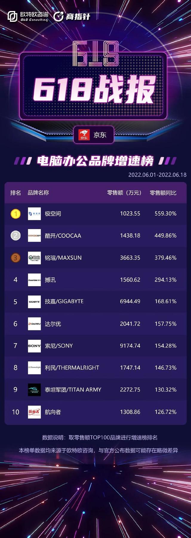“游戲本電腦”成為電腦辦公行業(yè)里的“鯰魚”,除了自身行業(yè)零售額增長超過30%,也帶動了游戲外設、游戲顯卡等一眾細分行業(yè)。另外,網(wǎng)絡存儲服務器“極空間”和整機電腦的“新生”品牌酷開增長也十分迅速。