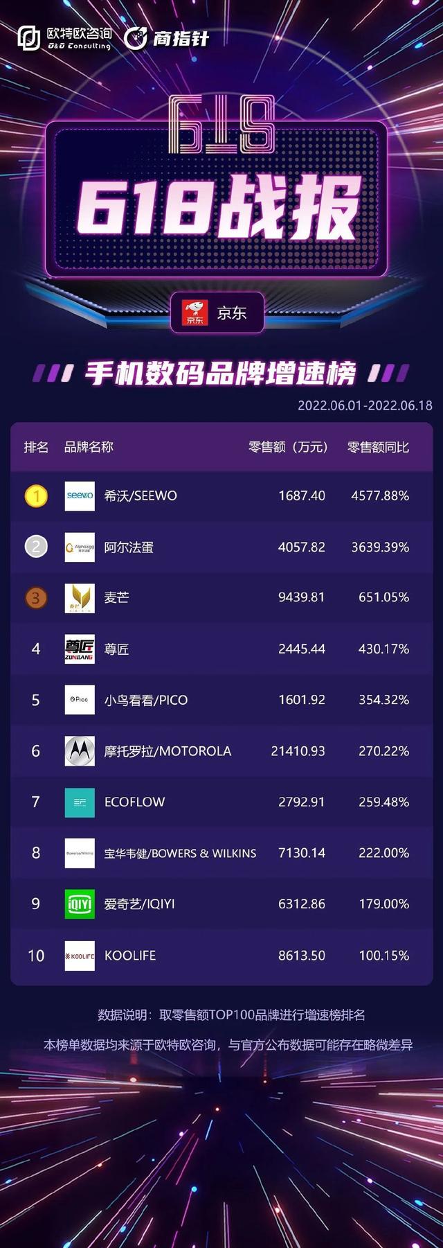 手機數(shù)碼市場是2022年京東6·18最“難”的行業(yè),零售額同比下滑達10.45%。其中,手機市場只有“榮耀”保持了明顯地增長趨勢。而索尼和大疆則分別憑借“微單相機”和“航拍機”躋身手機數(shù)碼品牌銷售榜TOP10。雖然手機市場零售額下滑嚴重,但手機配件市場卻是一片“紅海”。主營充電設備的“尊匠”、戶外電源的“ECOFLOW”、藍牙耳機的“寶華韋健”和“KOOLIFE”增長迅速。另外,智能設備也成為了手機數(shù)碼行業(yè)新的增長點。希沃和阿爾法蛋在兒童智能學習設備上“各有所長”,小鳥看看/Pico則是國內領先的VR設備品牌,而愛奇藝則在VR設備和兒童學習機兩個領域布局幾近完美。