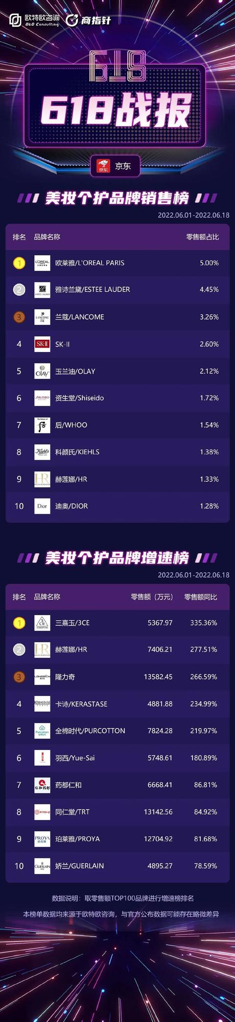 今年618期間京東美妝個護市場趨于平緩,但頭部美妝份額提升明顯,CR5集中度大幅提升。在高增品牌榜單中,“三熹玉”、“赫蓮娜”和“卡特”遙遙領先,高品質和強功效的高端品牌正在為消費者所接受。另外,“隆力奇”、“全棉時代”和“同仁堂”等頭部國產(chǎn)品牌份額提升也十分明顯。