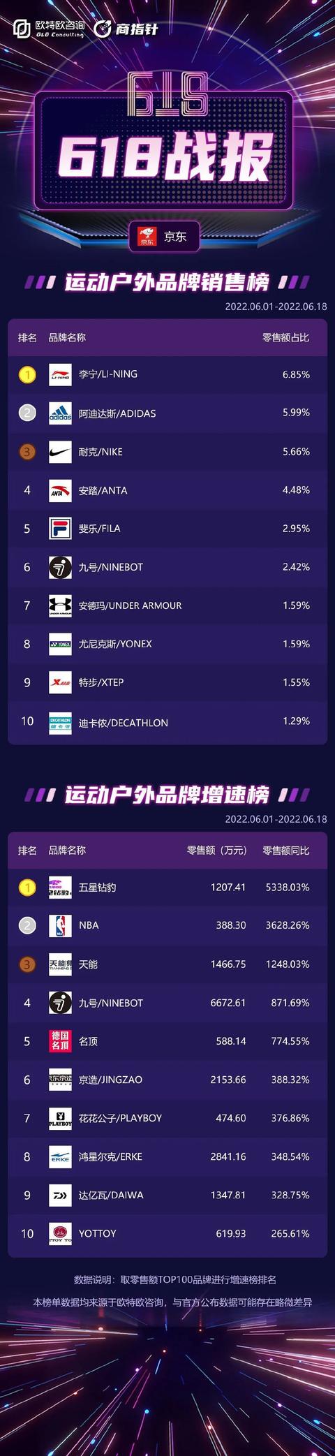 運動戶外也是今年增長較為快速的品類之一。在上海解封+618優(yōu)惠力度加大的共同作用下,今年618戶外服裝消費迎來向拐點,其中運動鞋服和戶外裝備表現(xiàn)較為強勁,另外專業(yè)戶外設備與運動設備增長也十分明顯。