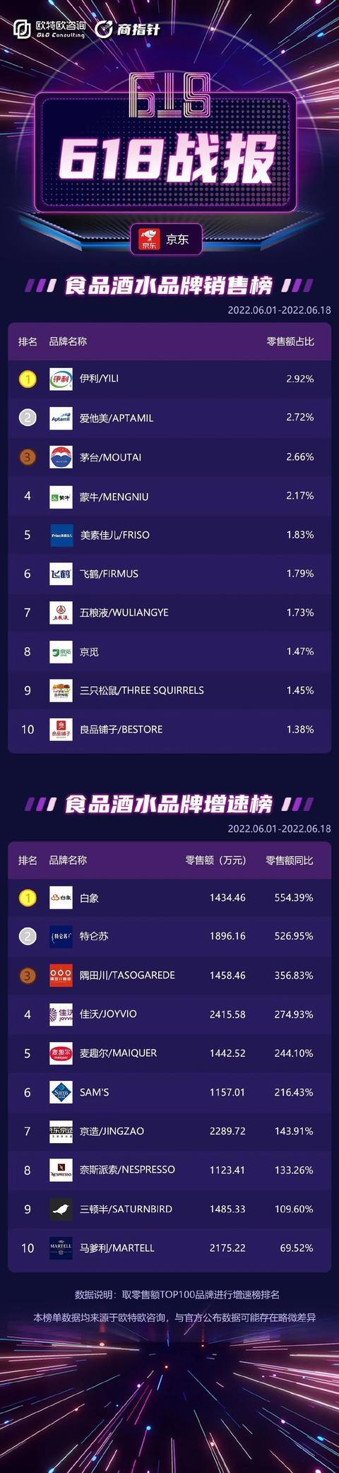 食品酒水行業(yè)是京東的傳統(tǒng)優(yōu)勢行業(yè),也是本次京東618的第四大行業(yè),但是今年618期間卻有小幅下滑。從細分行業(yè)上看,乳業(yè)和休閑食品的下滑是造成行業(yè)下滑的主要原因;從供需側看,上半年疫情影響造成消費者“囤積過量”,食品消費在618中也沒有得到完全釋放。因而,伊利、蒙牛等傳統(tǒng)食品行業(yè)巨頭在今年京東渠道618零售額表現(xiàn)疲軟。在高增品牌榜單中,“白象”憑借良好的社會影響在今年618大獲成功;而中高端食品品牌“特侖蘇”、“麥趣爾”、“山姆會員”和“佳沃”大幅增長,代表著食品品質的全面升級;另外,伴隨著咖啡文化的深入,“隅田川”、“奈斯派索”和“三頓半”等咖啡品牌也迎來高速增長。
