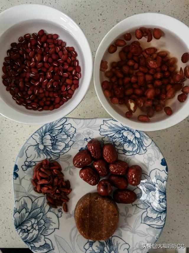 1.準備食材:大棗、枸杞、紅糖、紅皮花生、紅小豆
