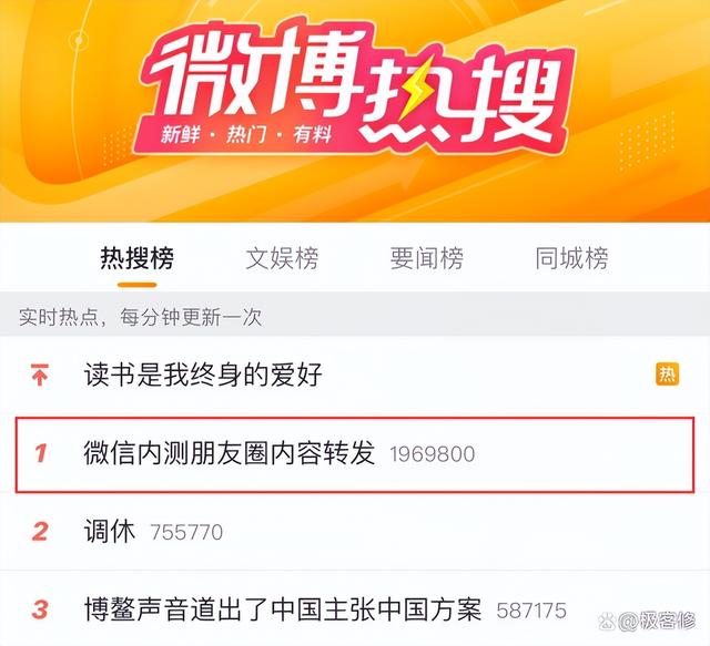 微信內(nèi)測朋友圈內(nèi)容轉(zhuǎn)發(fā)又一次成為微博熱搜榜的第一名,這次是在四月的最后一周。
