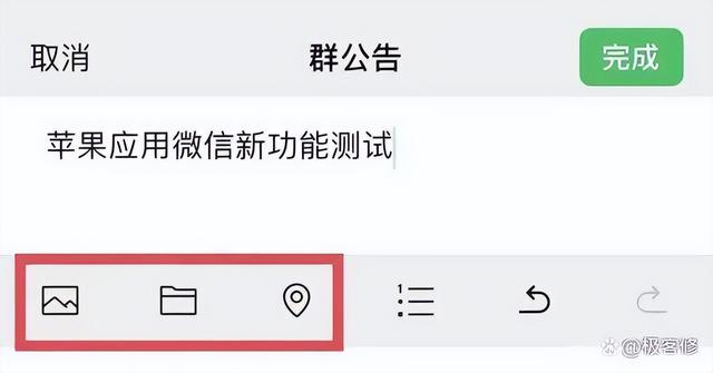 這次的內(nèi)測推出了一些新功能,比如在群公告中支持插入圖片、文件、位置等,同時還進行了一些細(xì)節(jié)上的優(yōu)化。