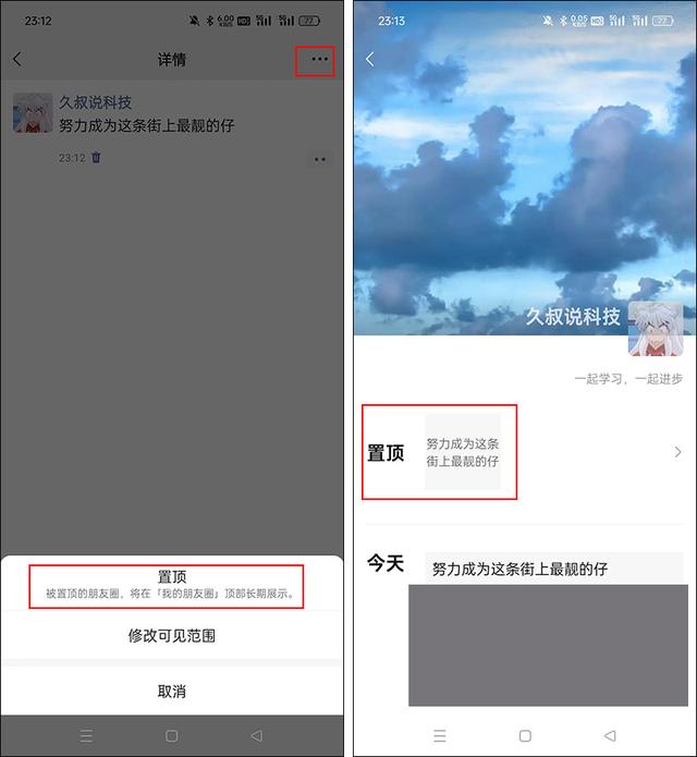 此外,朋友圈還新增了置頂功能,可以將我們某條或某幾條朋友圈放到置頂位置。這個功能對于在朋友圈賣東西的人來說相當(dāng)有用,可以置頂自己的聯(lián)系方式等;而戀愛中的人也可以利用這一功能置頂官宣的內(nèi)容,給對方更多的安全感。另外,還能置頂自己最喜歡或最能代表自己的內(nèi)容,比如自拍或自己的目標(biāo)等。這個功能的引入豐富了朋友圈的互動方式。
