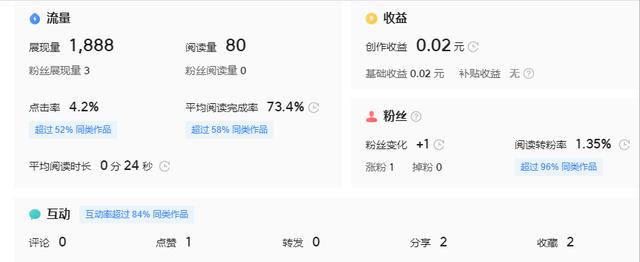 截至今天,第40天,粉絲數(shù)1476,收入8.66元,一共寫了448條內(nèi)容。真實感受是,寫出爆款非常難,但是每天都有機(jī)會。這個世界很公平,給了大家一個非常公平的平臺,盡情地發(fā)揮自己的聰明才智,不用擔(dān)心被埋沒。